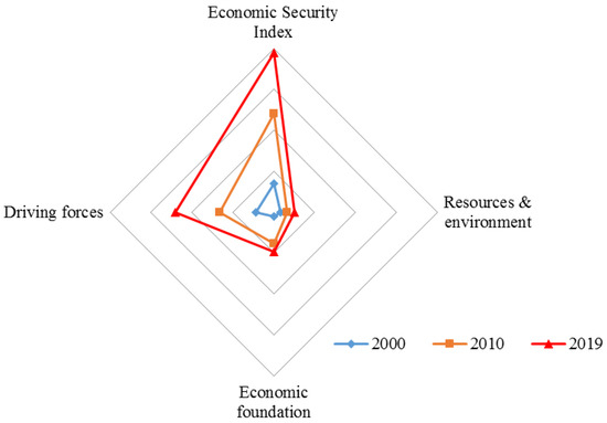 The term ‘economic security’ is used to describe a state in which a national economy is allowed to maintain resistance to both internal and external threats [1]. It also refers to the ability of a country to resist destructive actions and to maintain the sustainable development and competitiveness of the country in the global economic system [2]. As an integral part of national security, economic security has always been of concern to sovereign countries, and its importance has become increasingly prominent in the context of economic globalization. The 2008 financial crisis hit markets, finance, industry, and employment in countries around the world, and the economic security of countries was seriously threatened [3,4]. The outbreak of COVID-19 has led to increased risks in the global business environment [5,6], and countries have taken strategic preventive measures to enhance their economic security.