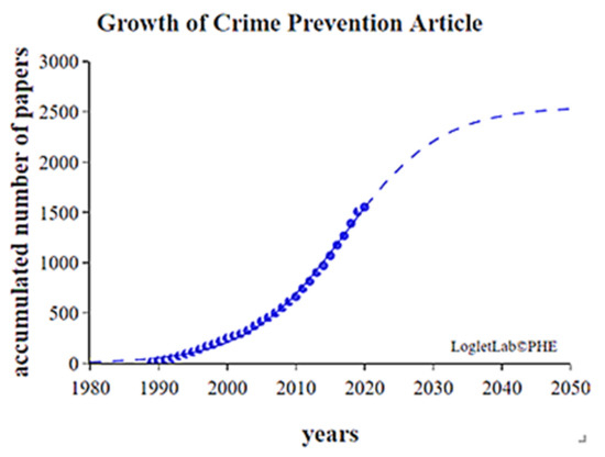 This study input the total number of studies on crime prevention published each year in the WOS database into Loglet Lab 4 to create a graph; the Y-axis was the number of papers, and the X-axis was the year. The graph enabled us to identify periods of growth and maturity in the field.