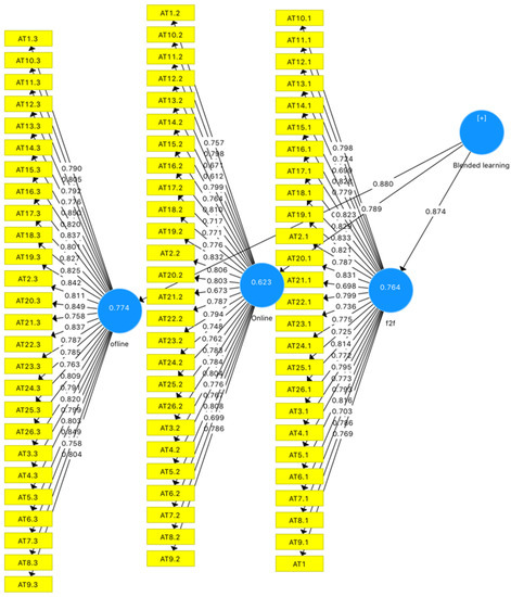 All items showed a factor loading greater than 0.4 with their relevant factors, as recommended by researchers (see Figure 2). The reliability and validity of the questionnaire was measured with the help of Cronbach’s alpha, rho alpha, and composite reliability. It was found that online, offline, and face-to-face constructs showed a Cronbach’s alpha, rho_Alpha, and composite reliability values higher than 0.7, as recommended by Hair Jr. et al. [75]. The average variance extracted (AVE) values for three constructs were found to be higher than the threshold of 0.5, as recommended by Hair Jr., Sarstedt, Ringle, and Gudergan [75] (See Table 1).