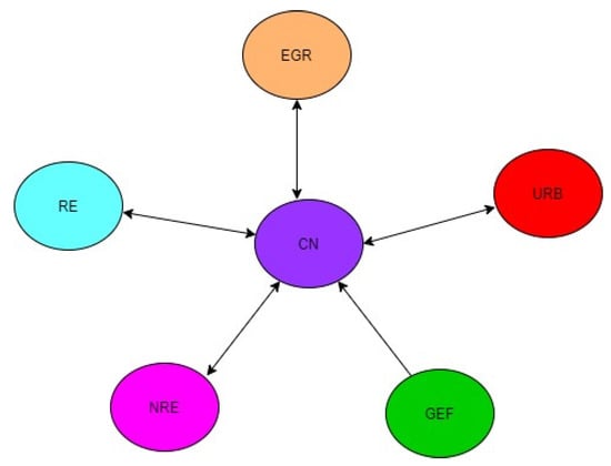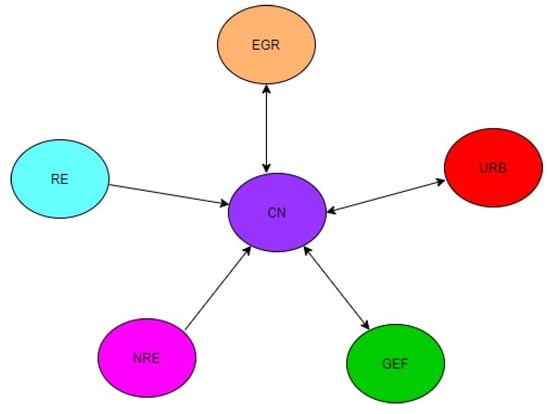 Besides these selected variables, we need to control for other variables to improve statistical accuracy. The conversion of Earth’s land surface to urban use is harmful to the environment. Anthropogenic activities, such as the flight of a large number of vehicles, farming, and industrial operations, produce CO2 [66,67]. As a result, in this study, we control for urbanization (URB). Scholars, such as Khan et al. [59] and Xue et al. [19] endorse this theoretical justification for using URB in the transition to CN. CN is closely tied to the production and consumption of non-renewable energy (NRE), which increases CO2 [68,69]. Therefore, we control for NRE in CN framework.