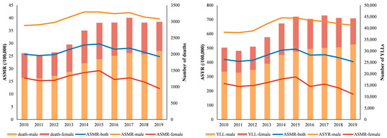 | Characteristics | ASMR Per 100,000 No. (95% UI) | EAPC No. (95% CI) | ASYR Per 100,000 No. (95% UI) | EAPC No. (95% CI) | ||