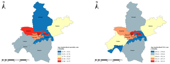 | Jiangxia | 36.37 (31.07, 42.36) | 21.78 (18.21, 26.1) | −4.02 (−7.2, −0.73) | 602.57 (580, 625.82) | 323.22 (308.67, 338.49) | −4.96 (−8.71, −1.06) |