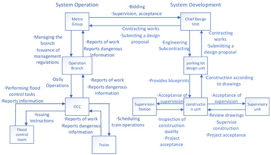 After the investigation, it was found that the parking lot design contractor had changed the original design scheme during the engineering design stage; the construction contractor used the unexamined design drawings during the construction stage; the Metro Group agreed to the construction contractor’s illegal construction during the construction stage and failed to find that the water-retaining fence did not meet the specification requirements at the time of acceptance, a major hidden problem. This suggests that there was a lack of structure to control irregularities throughout the process from design to acceptance. In fact, the engineering supervision company should have acted as a control structure to eliminate violations, but for unknown reasons, the supervision company did not finish its job. This dereliction of duty led to safety hazards in the construction phase of Metro Line 5, which, combined with the special nature of the metro as a low-lying space, made emergency management much more difficult, due to substandard disaster prevention facilities The CAST analysis of Zhengzhou Metro’s emergency control structure is shown in Figure 4. The left side of Figure 4 is the system components when the metro is running, and the right side is the system components when the metro was being built.