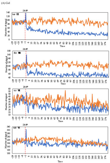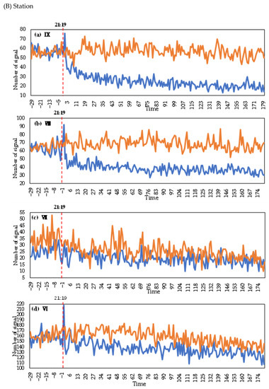 3.1.3. Signaling Changes between the Day of and the Day before the Earthquake