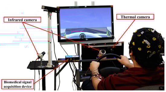 Nasir Semi 003TM driving simulator and placement of data acquisition devices. In this study, only data measured from thermal camera and ECG signals were used.