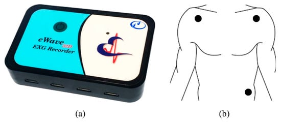 (a) Biomedical data acquisition device; (b) ECG lead placement.