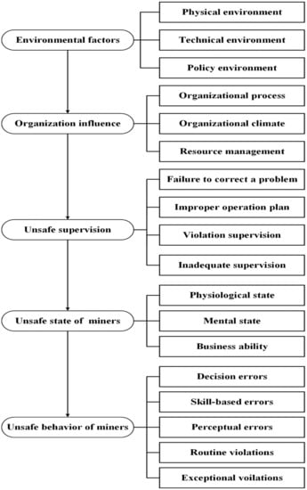 - Yang, L.; Wang, X.; Zhu, J.; Qin, Z. Risk Factors Identification of Unsafe Acts in Deep Coal Mine Workers Based on Grounded Theory and HFACS. Front. Public Health 2022, 10, 422. [Google Scholar] [CrossRef] [PubMed]