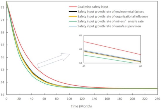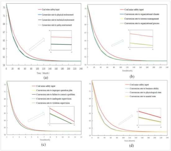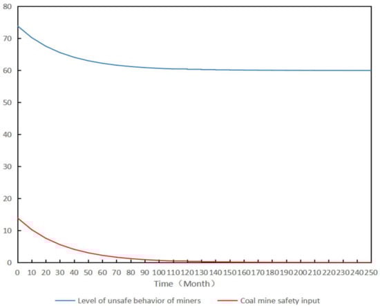 The fourth step was to apply the HFACS-CM-SEM-SD model. In the dynamic simulation process, different scenarios were simulated to measure the influence of varying coal mine safety inputs on the level of unsafe behavior of miners.