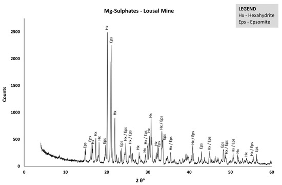 - Valente, T.; Grande, J.A.; de la Torre, M.L. Magnesium and aluminium sulfates in salt efflorescences from acid mine drainage in the Iberian Pyrite Belt (SW Spain). In Mining Meets Water-Conflicts and Solutions; Carsten, D., Michael, P., Eds.; Proceedings IMWA: Freiberg, Germany, 2016. [Google Scholar]