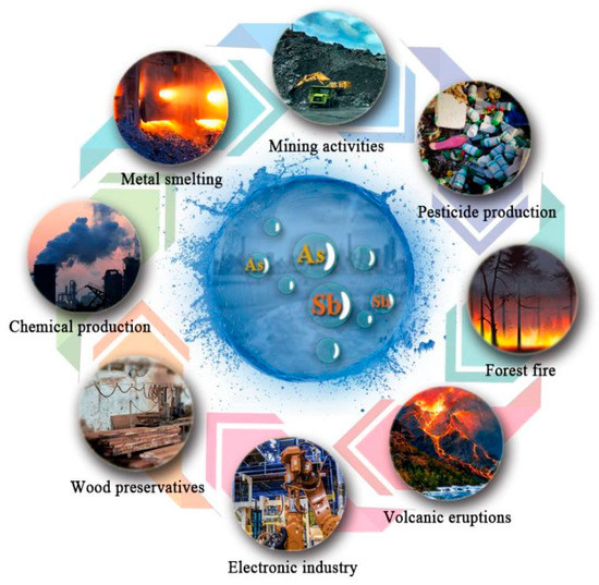 - The current methods for removing Sb and As in water environments mainly include coagulation/flocculation, ion exchange, membrane technology, phytoremediation, and electrochemical methods. Compared with the above technologies, adsorption technology has high efficiency in removing Sb and As. Meanwhile, it has the advantages of low cost, high benefit, strong regeneration ability, no by−products, and simple operation.