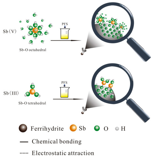 - Mitrakas, M.; Mantha, Z.; Tzollas, N.; Stylianou, S.; Katsoyiannis, I.; Zouboulis, A. Removal of Antimony Species, Sb(III)/Sb(V), from Water by Using Iron Coagulants. Water 2018, 10, 1328. [Google Scholar]