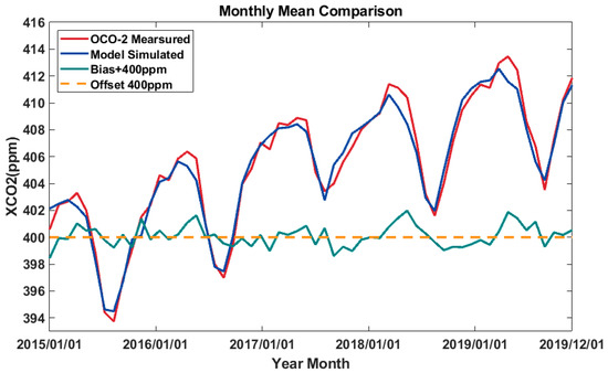 The third part was mainly to compare and analyze the spatio-temporal differences between the XCO2 data set simulated by the model and the XCO2 data set monitored by the satellite.