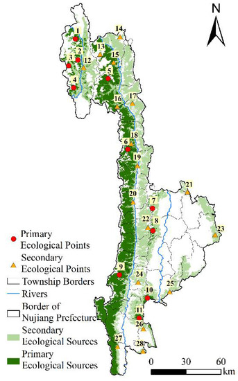 3.2.1. Identification of Ecological Sources and Points