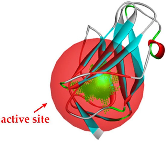 Molecular docking in silico was applied to estimate the binding sites and affinities of the chemicals in todomatsu oil on Der f 2. Before docking analysis, the preparation of protein and ligands was achieved. The composition of todomatsu oil was provided by Forestry and Forest Products Research Institute, Wood extractives laboratory, and Japan Aroma Laboratory [37]. The docking analysis was performed using 3D structure-data files (SDF) of the compounds acquired from the PubChem database (https://pubchem.ncbi.nlm.nih.gov/) (accessed on 9 December 2021). From the Protein Data Bank (PDB) (https://www.rcsb.org/) (accessed on 9 December 2021), the allergen Der f 2 (PDB ID: 1WRF) was retrieved. AutoDock Vina was in charge of energy minimization of ligands and protein minimization [40,49,50,51]. Biovia Discovery studio 4.5 was used to discover the active spots on Der f 2 (BIOVIA 2020). The active site of the allergen Der f 2 is shown in Figure 1.