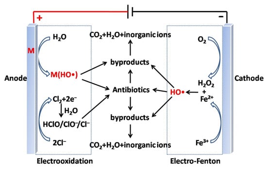 - Wang, X.; Li, F.; Hu, X.; Hua, T. Electrochemical advanced oxidation processes coupled with membrane filtration for degrading antibiotic residues: A review on its potential applications, advances, and challenges. Sci. Total Environ. 2021, 784, 146912. [Google Scholar] [CrossRef] [PubMed]
