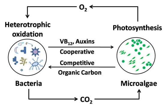 - Zhang, B.; Li, W.; Guo, Y.; Zhang, Z.Q.; Shi, W.X.; Cui, F.Y.; Lens, P.N.L.; Tay, J.H. Microalgal-bacterial consortia: From interspecies interactions to biotechnological applications. Renew. Sust. Energy Rev. 2020, 118, 109563. [Google Scholar] [CrossRef]