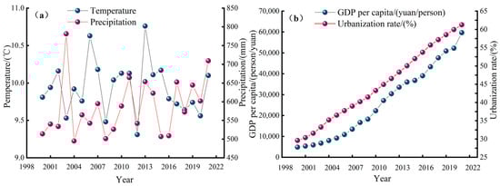 The eco-environment is defined as “the total quantity and quality of water, land, biological and climatic resources that affect human survival and development”, and is a social–economic–natural complex system [1,2,3]. It not only provides natural resources, space, and basic material conditions for human survival, but also serves as a basic guarantee for human survival and social development. Its quality can effectively reflect the degree of harmony between human production activities and the regional environment [4]. In recent decades, the eco-environment in China has been increasingly disturbed by global climate change and human activities. For example, with the acceleration of urbanization, the discharge of wastewater, solid waste, and air pollution has increased, and environmental problems such as the urban heat island effect caused by the expansion of construction land and reduction in farmland have appeared [5,6,7,8]. Based on this, scientific evaluation of the quality of the ecological environment is essential for sustainable regional development.