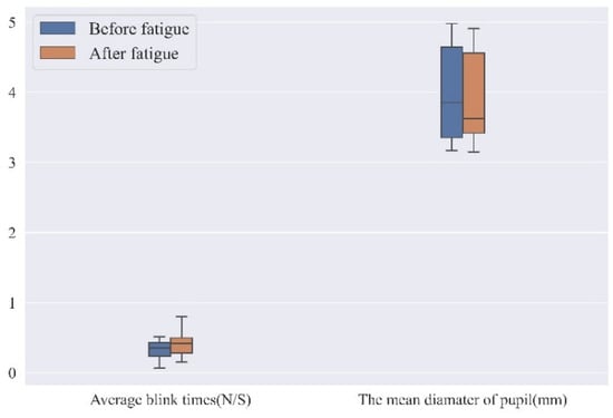 These two indicators provide a lateral insight into the brain fatigue state of the operator during VDT tasks. The data also provides good validation that blinking can reflect a person’s brain fatigue and psychological state. When the person is more focused, both the blink duration and the blink frequency decrease, while an increase in the blink frequency indicates the state of brain fatigue and poorer concentration. Changes in pupil diameter can also be a good indicator of brain fatigue, with a strong correlation between pupil size and brain fatigue.