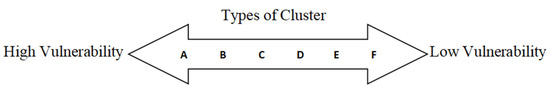 This study found that there are six clusters of students in Sabah, represented by symbols A, B, C, D, E, and F. The largest number of students is shown in the Cluster A category (21.1%). Students in the cluster category A face all five challenges. Nevertheless, the three most frequently experienced challenges that can be seen in all the six clusters are the following: Co1 (M = 4.39, SD = 0.44), Co2 (M = 4.29, SD = 0.47), and Co3 (M = 4.23, SD = 0.58). This shows that students in the Cluster A category are the most vulnerable, as compared to the other five clusters (Table 4; Figure 3). The total percentage of students in the Cluster C category is the lowest (13.8%). Students in the cluster category A also tend to experience problems with Co1 (M = 3.83, SD = 0.59), Co2 (M = 3.80, SD = 0.62), Co4 (M = 3.55, SD = 0.73) and Co5 (M = 4.01, SD = 0.75). This study also found that students in the Cluster F category have the lowest level of vulnerability during the implementation of virtual learning from home, compared to the other five clusters. Additionally, the average students in the F cluster category do not agree that virtual learning from home causes Co3 (M = 2.45, SD = 0.75) and Co5 (M = 2.54, SD = 0.73). A detailed explanation of the challenges of virtual learning from home based on the division of clusters is shown in Table 4. In addition, Figure 4 also identifies the level of vulnerability based on the ranking of each of the clusters.