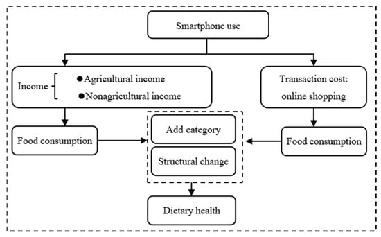 Smartphone use is spreading rapidly in the rural areas of China, and online shopping has also penetrated further and is more convenient than that found in the rural areas of most other countries. Given the power of online shopping and e-commerce, how does smartphone use affect the food consumption behaviour of farmers? In the Chinese context, the impact of smartphone on the diversity of the food consumed among farmers and the underlying mechanisms may differ from those in other contexts. In what follows, two mechanisms underlying the effect of smartphone use on the food diversity of rural residents are analysed. These mechanisms are the income effect and the transaction cost effect.