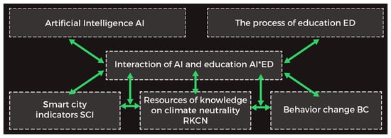| 1 | Smart people | Education (EDU) | Human resources, teaching and learning, knowledge transfer | [30,65,66,67] | Interactive tools, AI and neural networks, machine learning (INTERAI) | Shaping pro-environmental attitudes and behaviors through a system of suggestions, encouragement, feedback, and positive reinforcement; solving challenging social environmental problems (SPAB)  | Particular tested tools and solutions that can be easily implemented in the wider educational system |