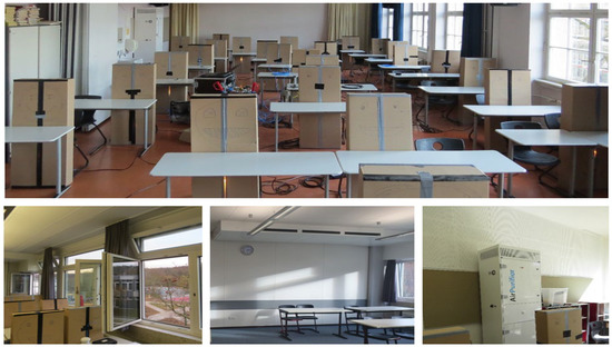 - Curtius, J.; Granzin, M.; Schrod, J. Testing mobile air purifiers in a school classroom: Reducing the airborne transmission risk for SARS-CoV-2. Aerosol. Sci. Technol. 2021, 55, 586–599. [Google Scholar] [CrossRef]