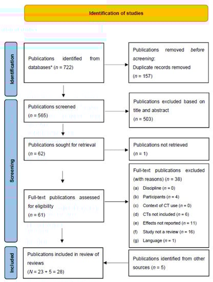 - If an included review covered only primary studies addressing CT-related interventions and/or self-directed behaviors, the general conclusions of the review were used to report the effects.