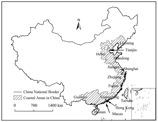 Figure 2. The location of Coastal Areas in China (authors’ own composition).