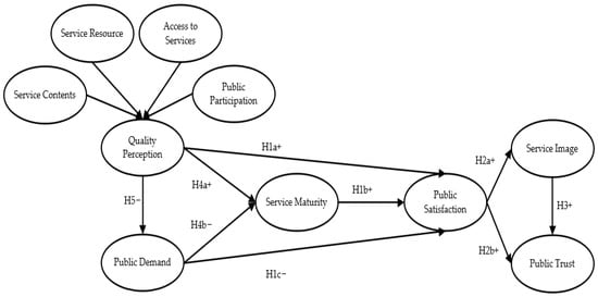 According to the ACSI model, perceived quality and customer expectations influence perceived value. In this study, the service maturity originates from the perceived value, which is influenced by quality perception and public demand, whereby the better the perceived service, the higher the maturity, but the greater the public demand, the lower the maturity. Therefore, research hypotheses 4a and 4b are proposed.