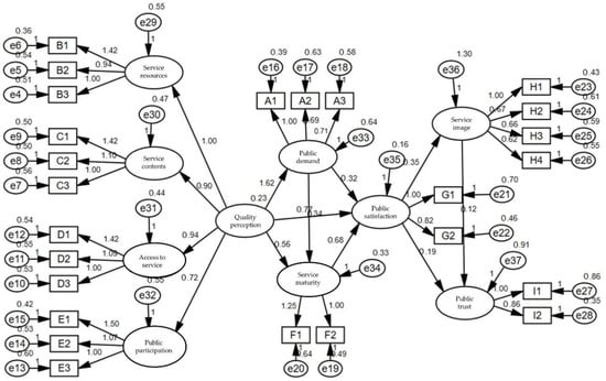 There are two significant findings in this paper. The first is the validation of the antecedent variables of public satisfaction and the relationship among these variables in the scenario of community services for the COVID-19 pandemic. The results show that public satisfaction is significantly and positively influenced by quality perception (0.305 **), public demand (0.295 **) and service maturity (0.465 ***); service maturity is positively influenced by public demand (0.460 ***) and quality perception (0.323 *); and public demand is positively influenced by quality perception (0.693 ***). The second is to verify the consequence variables of public satisfaction and the relationship among these variables in the scenario of community services for the COVID-19 pandemic. The results show that public satisfaction has a significantly positive effect on service image (0.346 ***) and public trust (0.232 **), and service image significantly affects public trust (0.140 *).