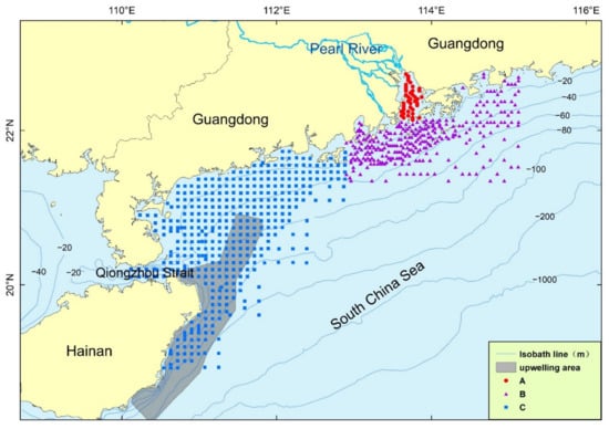 - Deng, S.; Zhong, H.; Wang, M.; Yun, F. On relation between upwelling off Qionghai and fishery. J. Oceanogr. Taiwan Strait 1995, 14, 51–56. [Google Scholar]