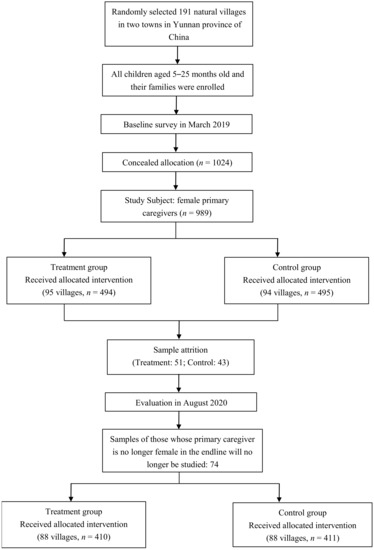 Bai, Y.; Abulitifu, R.; Wang, D. Impact of an Early Childhood Development Intervention on the Mental Health of Female Caregivers: Evidence from a Randomized Controlled Trial. Int. J. Environ. Res. Public Health 2022, 19, 11392. https://doi.org/10.3390/ijerph191811392