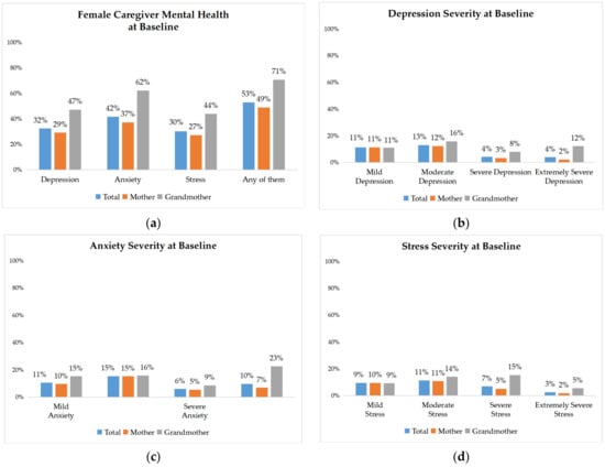 3.5. Female Caregivers’ Mental Health Outcomes with the Children and Family Characteristics of the Study Sample