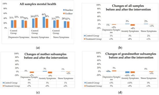 3.6.1. Female Caregivers’ Mental Health before and after Intervention