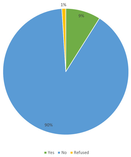 - Stojak, Z.; Jamiolkowski, J.; Chlabicz, S.; Marcinowicz, L. Levels of Satisfaction, Workload Stress and Support Amongst Informal Caregivers of Patients Receiving or Not Receiving Long-Term Home Nursing Care in Poland: A Cross-Sectional Study. Int. J. Environ. Res. Public Health 2019, 16, 1189. [Google Scholar] [CrossRef] [PubMed]