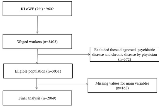 Flow diagram of inclusion and exclusion of participants. Note. KLoWF, Korean Longitudinal Survey of Women and Families.