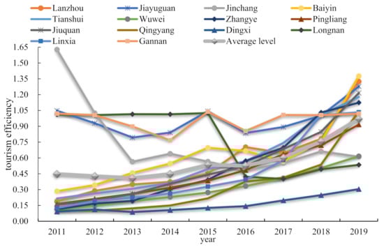 24]. The level of tourism efficiency in Western China is lower than that in central and eastern China, while that in Gansu is at a lower level [