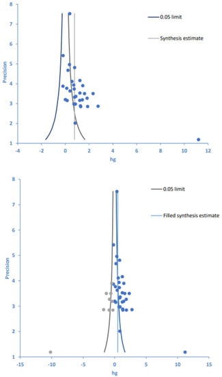- Duval, S.; Tweedie, R. Trim and fill: A simple funnel-plot-based method of testing and adjusting for publication bias in meta-analysis. Biometrics 2000, 56, 455–463. [Google Scholar] [CrossRef]