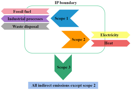 Accounting boundary and scopes of industrial park (IP) CO2 emissions.