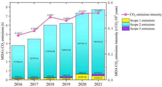 CO2 emissions by the Maanshan Economic and Technological Development Area (MDA) sectors from 2016 to 2021.