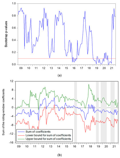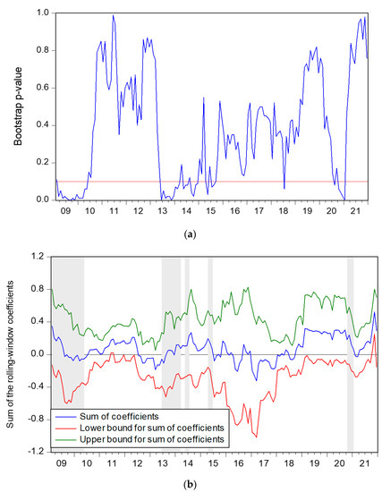 SP at the 10% level of significance in the periods of 2009:M3–2009:M7, 2013:M8–2014:M3, 2014:M5–2014M8, 2020:M10–2021:M1 (