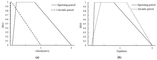 - Han, J.C.; Huang, Y.P.; Yuan, X.; Liu, G.Y.; Ma, Z.K. Analysis on habitat suitability index of schizothorax based on fuzzy logic. Yangtze River 2011, 42, 65–68. [Google Scholar] [CrossRef]