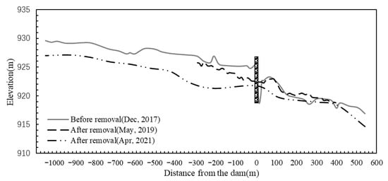 - Ma, J. Erosion, Deposition of Sediment and Morphologic Response to the Removal of the Small Dams; Chongqing Jiaotong University: Chongqing, China, 2017. (In Chinese) [Google Scholar]