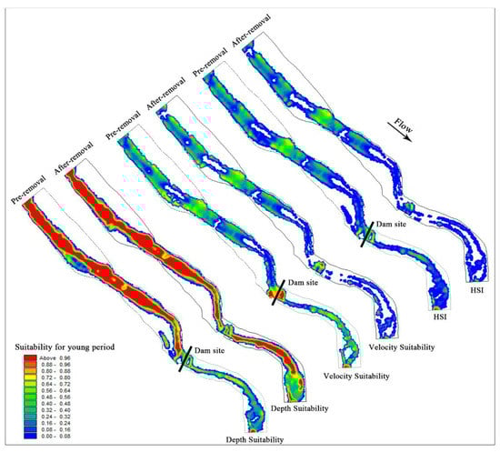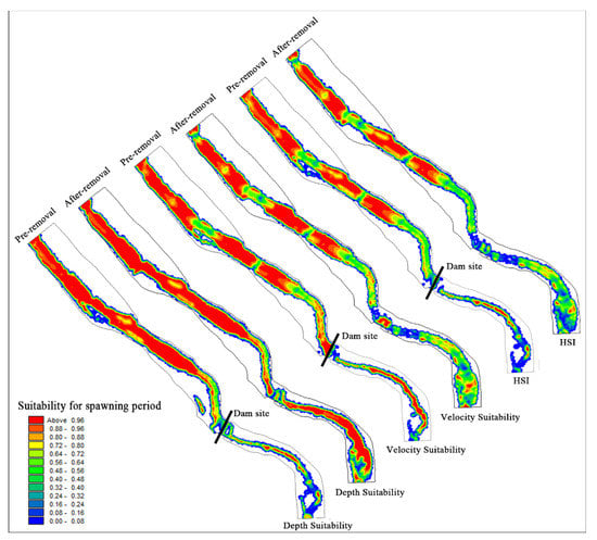 - Gillenwater, D.; Granata, T.; Zika, U. GIS-based modeling of spawning habitat suitability for walleye in the Sandusky River, Ohio, and implications for dam removal and river restoration. Ecol. Eng. 2006, 28, 311–323. [Google Scholar] [CrossRef]