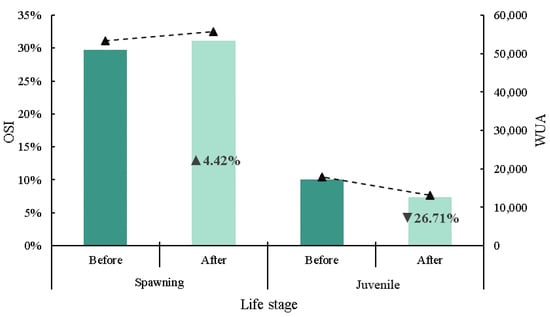 - Liu, Q.; Zhang, P.; Cheng, B.; Li, Y.; Li, J.; Zhou, H.; Sun, G.; Qing, J.; Zhu, Z.; Lu, Y. Incorporating the life stages of fish into habitat assessment frameworks: A case study in the Baihetan Reservoir. J. Environ. Manag. 2021, 299, 113663. [Google Scholar] [CrossRef] [PubMed]