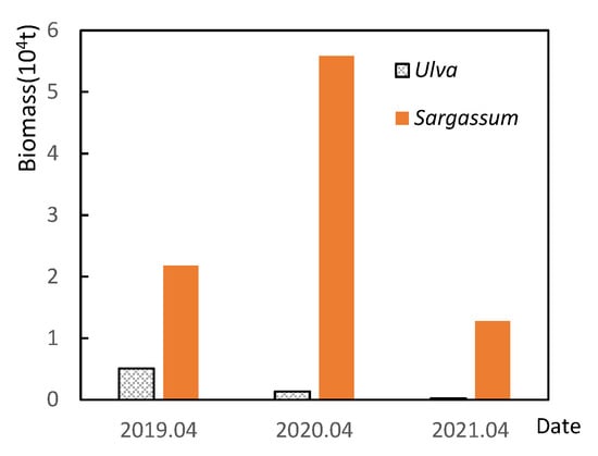 Biomass of floating Ulva and Sargassum in Subei Shoal in April 2019–2021.