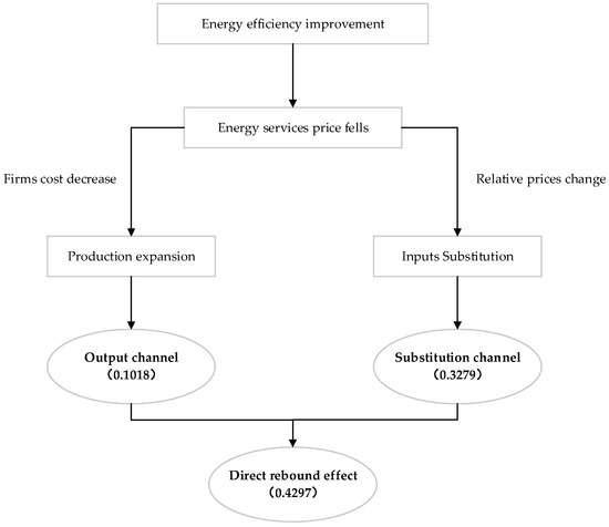 The direct rebound effect through the output channel () can be estimated by Equation (14).