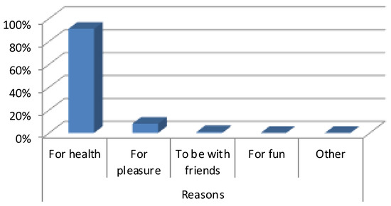 More than half of those questioned expressed in our study the fact that they went to practice their physical and sporting activities at the nearest SMI to their home due to their worry about their health (91.1%) followed by those who did it for pleasure (8.12%) (Figure 1).