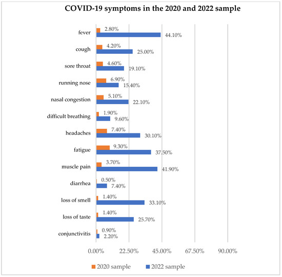 The distribution of most usual symptoms of COVID-19 in the 2020 and 2022 total samples is presented in Figure 1.