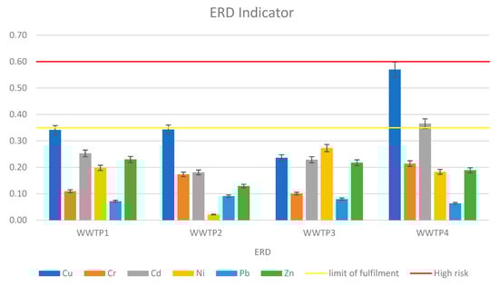 The environmental risk determinant (ERD) indicator of heavy metals in sewage sludge.